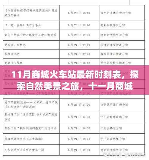 随着秋风渐起,十一月已悄然来临,在这美好的季节里,何不拿起行囊,搭乘商城火车站的最新时刻表,开始一场远离尘嚣、探索自然美景的旅行呢?让我们一同踏上这场鼓舞人心的旅程,去发现内心的平静与宁静。